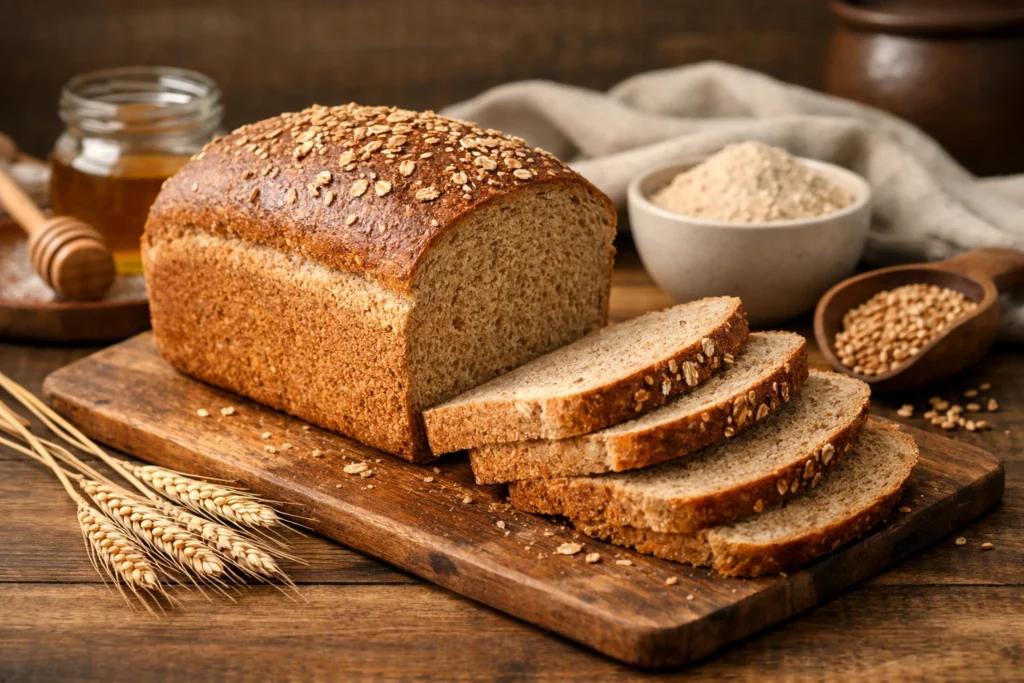 I started baking this whole wheat bread recipe regularly when I wanted better control over ingredients and texture. Store-bought versions were either too sweet or too dry. Baking at home allowed me to understand hydration, fermentation, and how freshly milled flour reacts differently from refined flour.